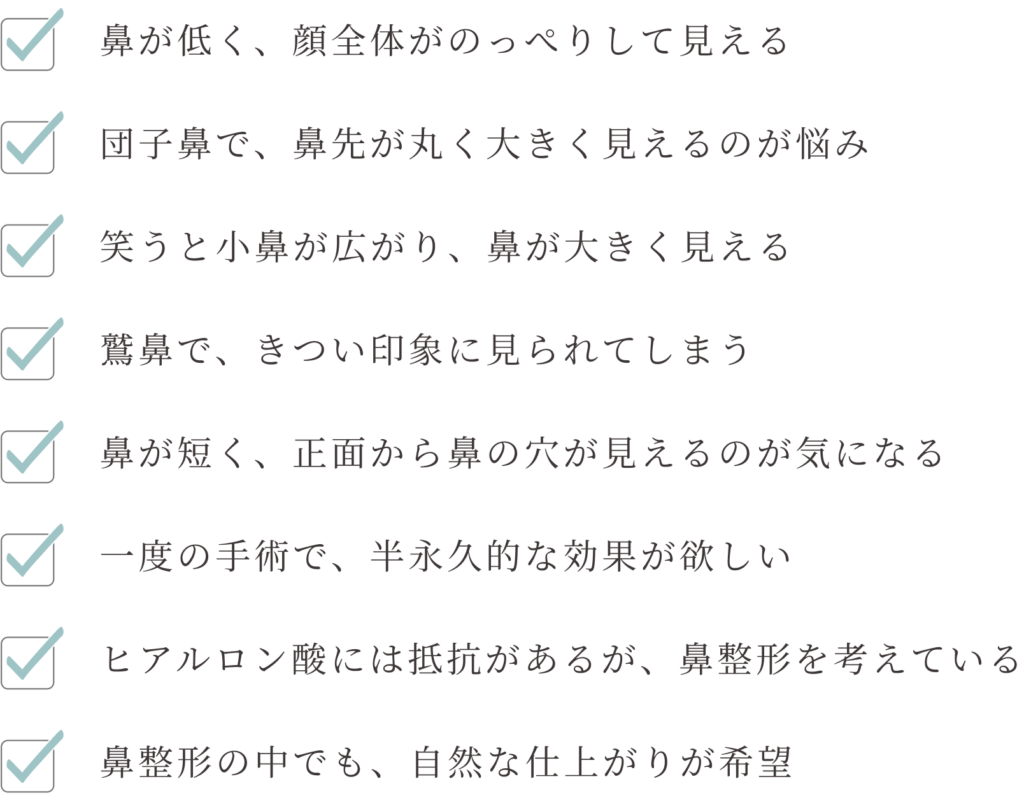 顔の中心にあるパーツだからこそ、お悩みは尽きないもの。一つでも当てはまる方は、