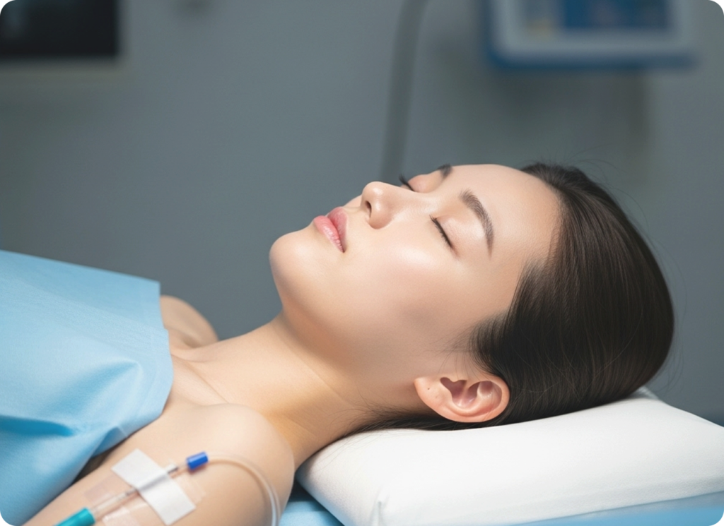 当院では静脈麻酔を用いるため、施術中に痛みを感じることはほとんどなく、多くの方が眠っている間に手術が完了します。術後の痛みに備えた痛み止めの薬は、全て料金内で処方。さらに、組織への負担を抑える繊細な手技により、術後の腫れや内出血などのダウンタイムを短くするための工夫も徹底しております。安心感を持っていただくために、手術には一般病棟や大手美容外科で5年以上の経験を積んだベテランの女性看護師のみが立ち会います。また、完全個室でプライバシーにも配慮した設備ですので、バレてしまうことがご不安な方も、ぜひご相談ください。